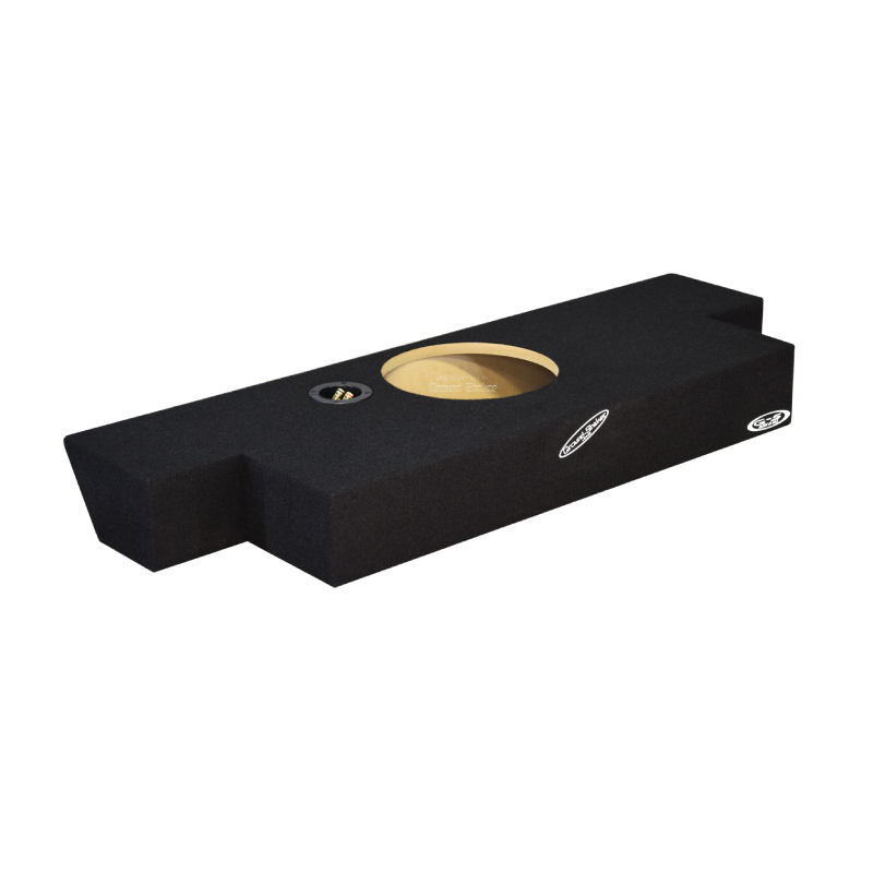 Crafted from 5/8" high-quality MDF, this enclosure delivers rigid construction for strong, precise bass performance. Its durable trunk-liner carpet finish protects the box while maintaining a sleek, factory-style appearance. The airtight Titebond silicone seal ensures proper internal air pressure for accurate low-frequency response, and the premium wood glue assembly provides lasting structural integrity. Equipped with 1 binding post terminal, it offers a secure and reliable connection for your subwoofer. Designed for discreet under-seat placement, the upward-firing configuration projects bass efficiently into the cabin. Installation Note: Seat removal is required; optimized for shallow-mount subwoofers. Compatibility: Subwoofers with wide baskets or magnets may not fit.