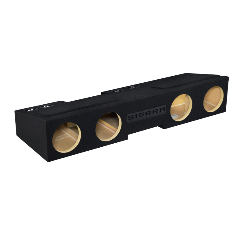 Black 8" Quad Ported Enclosure for 2019-2026 GMC Sierra Double & Crew-Cab (under rear seat)