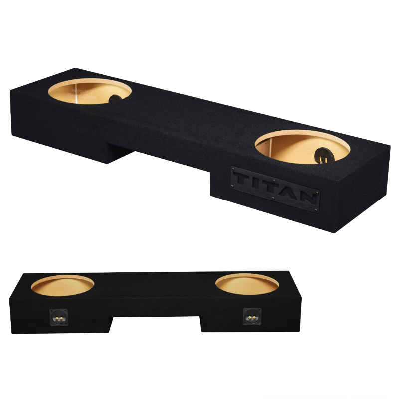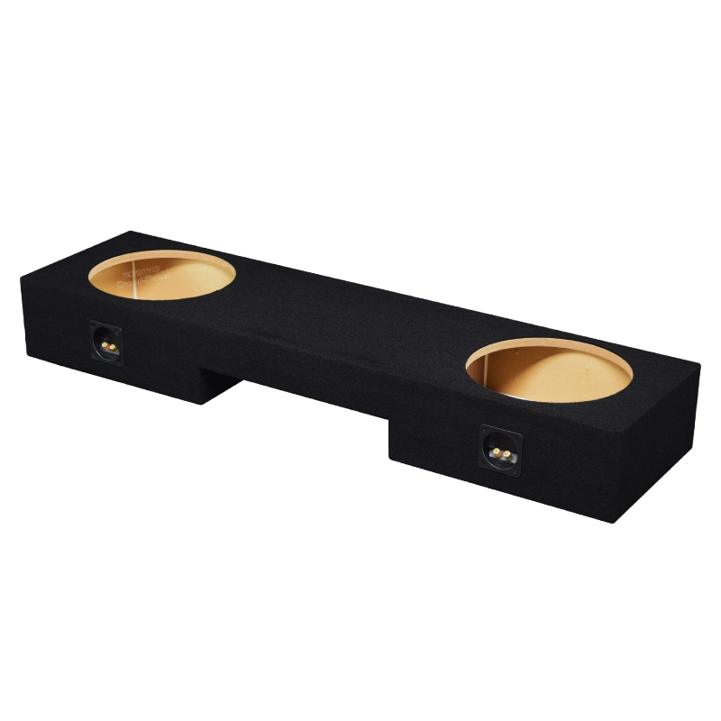 Built from 5/8" high-quality MDF wood, this enclosure delivers durable, rigid construction for clean and powerful bass. Carpeted with a durable trunk-liner finish, it protects the enclosure while giving a sleek, factory-style look. Sealed with premium Titebond silicone and glued with Titebond wood glue, it ensures airtight performance and long-lasting structural integrity. Featuring two binding post terminals, it provides secure and reliable connections for your subwoofers. Designed to fit perfectly under the rear seat, its upward-firing design projects bass efficiently for optimal in-cabin sound.