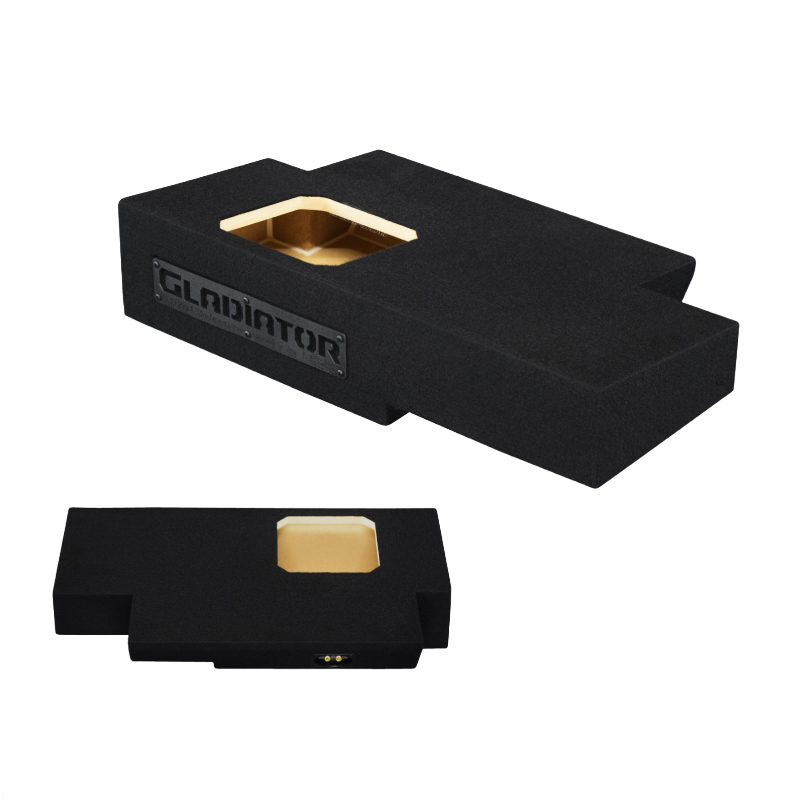 Built from 5/8" high-quality MDF wood, this enclosure delivers strong, clean, and powerful bass. Carpeted with durable trunk-liner material, it offers protection while maintaining a sleek, factory-style appearance. Sealed with premium Titebond silicone and reinforced with high-quality wood glue, it ensures airtight performance and long-lasting structural integrity. Featuring a single binding post terminal for a secure connection, the up-firing design projects bass upward for enhanced in-cabin sound. Custom-fit for the passenger side, it installs seamlessly under the rear seat.