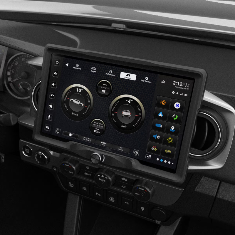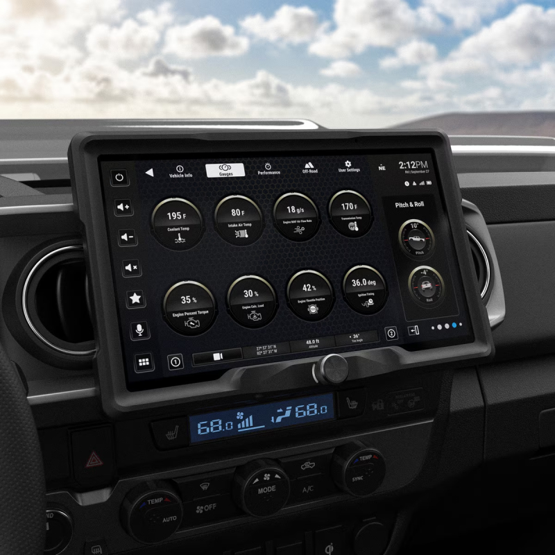 Features the HORIZON12 infotainment system with a fully customizable UI, including colors, wallpapers, and multi-zone layouts for a personalized experience. It comes with a factory-fit dash kit and integrated rotary volume knob for an OEM-style finish, plus a plug-and-play harness for quick, no-cut installation. The TY1A-SRK RadioPRO module ensures Toyota compatibility (JBL and non-JBL), while retention adapters preserve AM/FM, GPS, SiriusXM (SXV required), and USB functions. Full factory feature retention includes steering wheel controls, amplifier support, vehicle signals, and reverse camera input (if equipped), along with on-screen vehicle data like voltage and coolant temperature.