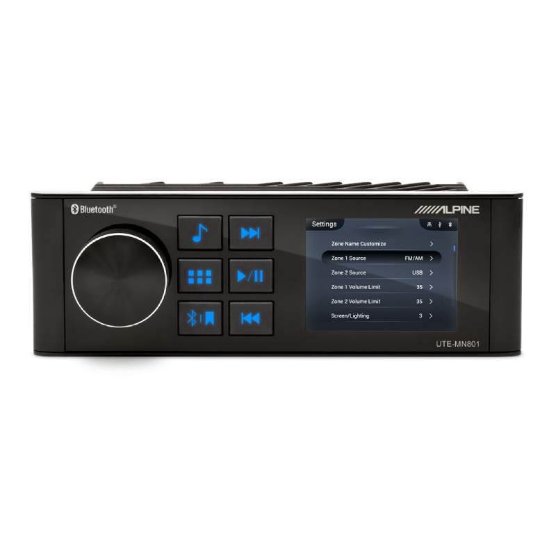 Alpine UTE-MN801 2.8” Full Color TFT Display Mechless Marine Digital Media Receiver with Built-In 5.2 Bluetooth (NMEA-2000)
