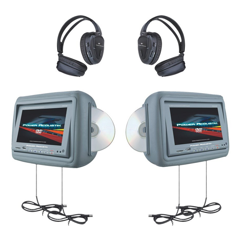1-Pair Universal Replacement Headrests with Pre-Loaded 8" Wide 16:9 Touch Screen Monitors. Also Includes Twin DVD Combo and Headphones (Gray)