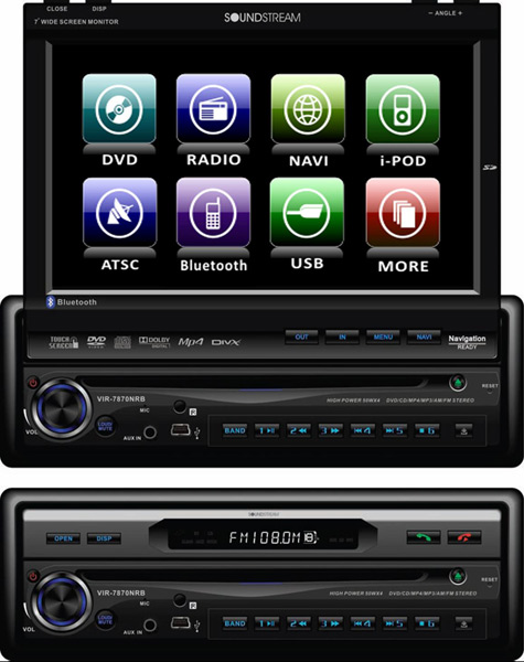 Bluetooth Enabled Single DIN In-Dash DVD, DVDRW, CD, CDRW, MP3, MP4, AM/FM Receiver with 7" Flip-Up Motorized TFT LCD Touchscreen Display and NTSC Analog TV Tuner