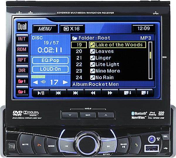 Bluetooth Enabled Single-DIN In-Dash DVD, CD, MP3, WMA, AM/FM Multimedia Navigation Receiver with 7" Full Color Motorized Flip-Out Touchscreen Display and USB/Front AUX Inputs