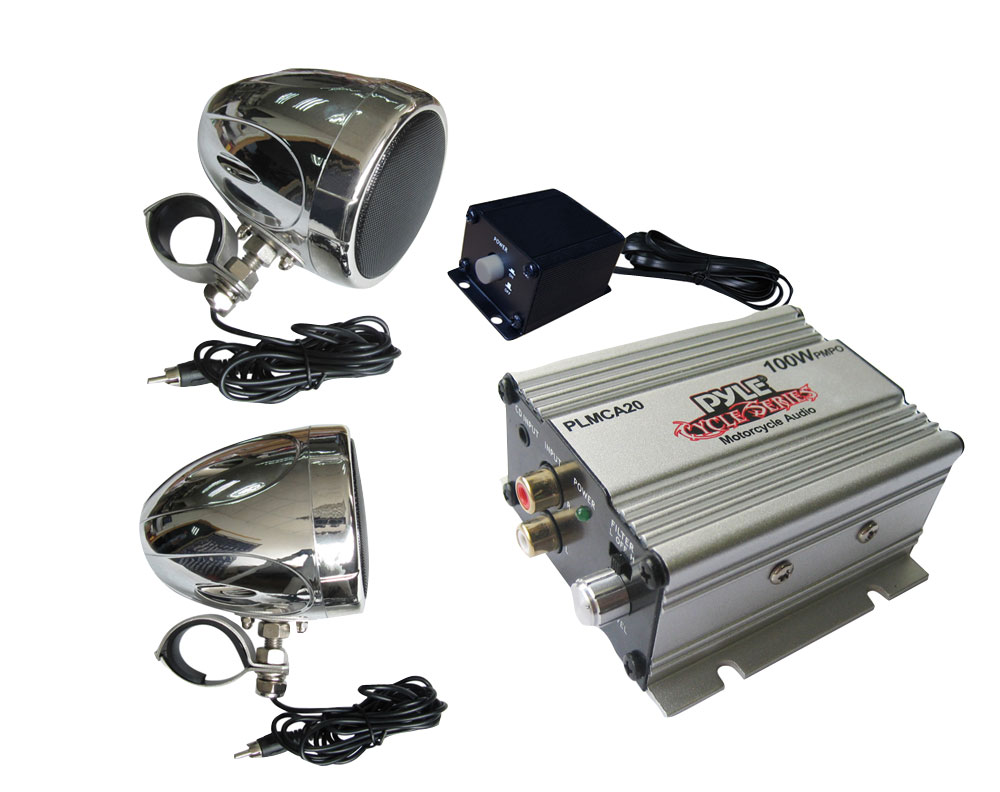 100W Motorcycle/ATV/Snowmobile Mount Amplifier with Dual Handle-Bar Mount and Weatherproof speakers with FM Radio