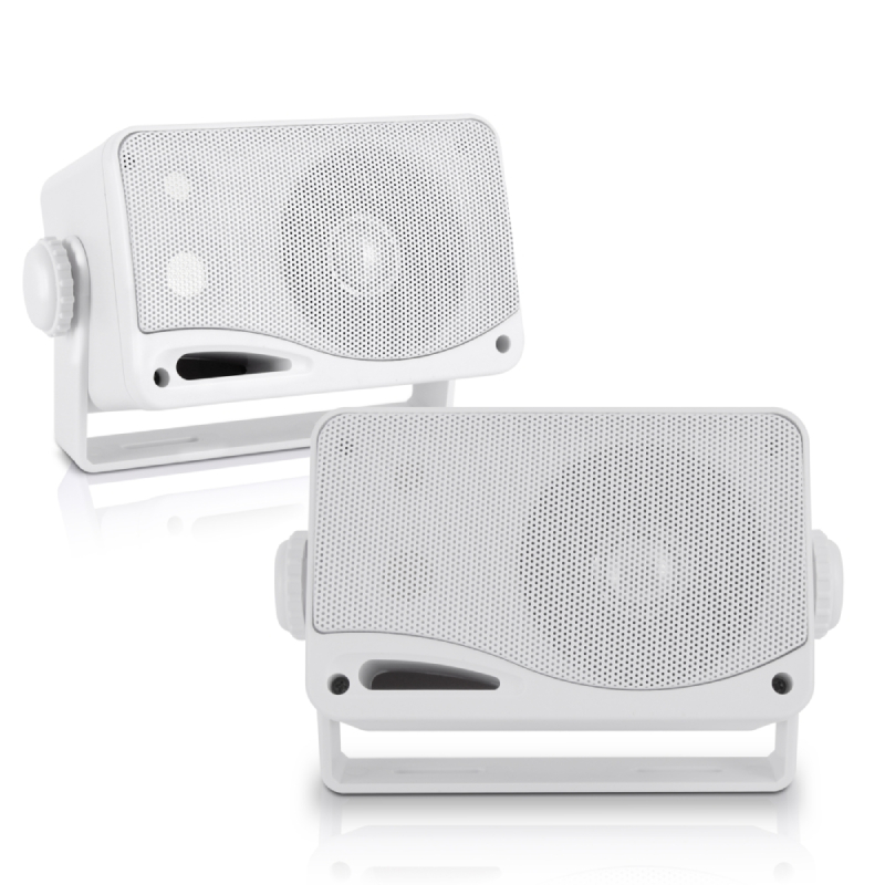 4" 300W Peak Power Handling, 4 Ohms, 3-Way Weather Proof Mini Box Speaker System (White)
