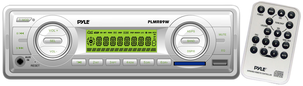 Single-DIN In-Dash AM/FM-MPX MP3 Marine Receiver with Weatherband and USB/SD Card Slots