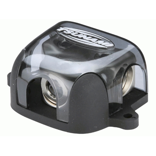 Ground Distribution Block with (1) 1/0 or 4 Gauge In and (2) 1/0 or 4 Gauge Out