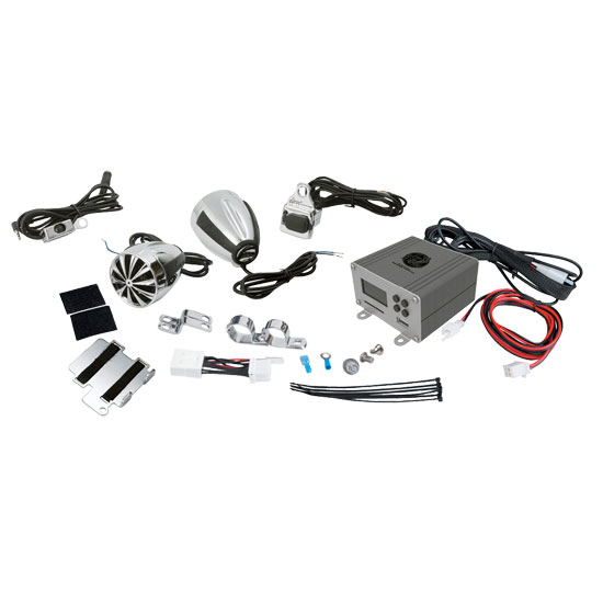 700W Motorcycle/ATV/Snowmobile Mount 4 Channel Amplifier with Dual Handlebar Mount Aluminum Die-Cast Weatherproof Speakers, MP3/Ipod Input, USB/SD Card Insertion, USB charger and FM Radio