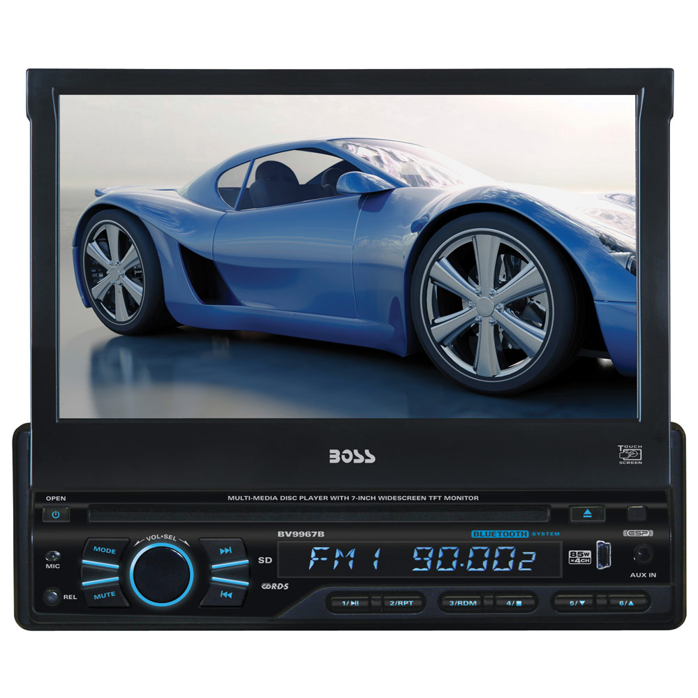 Bluetooth Enabled Single-DIN In-Dash DVD Receiver with 7" Flip-Up TFT-LCD Touchscreen and Front Panel Mini USB/AUX Inputs