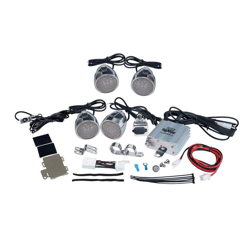 1200W Motorcycle/ATV/Snowmobile Mount Amplifier with Dual Handle-Bar Mount Aluminum Diecast Weatherproof Speakers with MP3/iPod Input and USB Charger