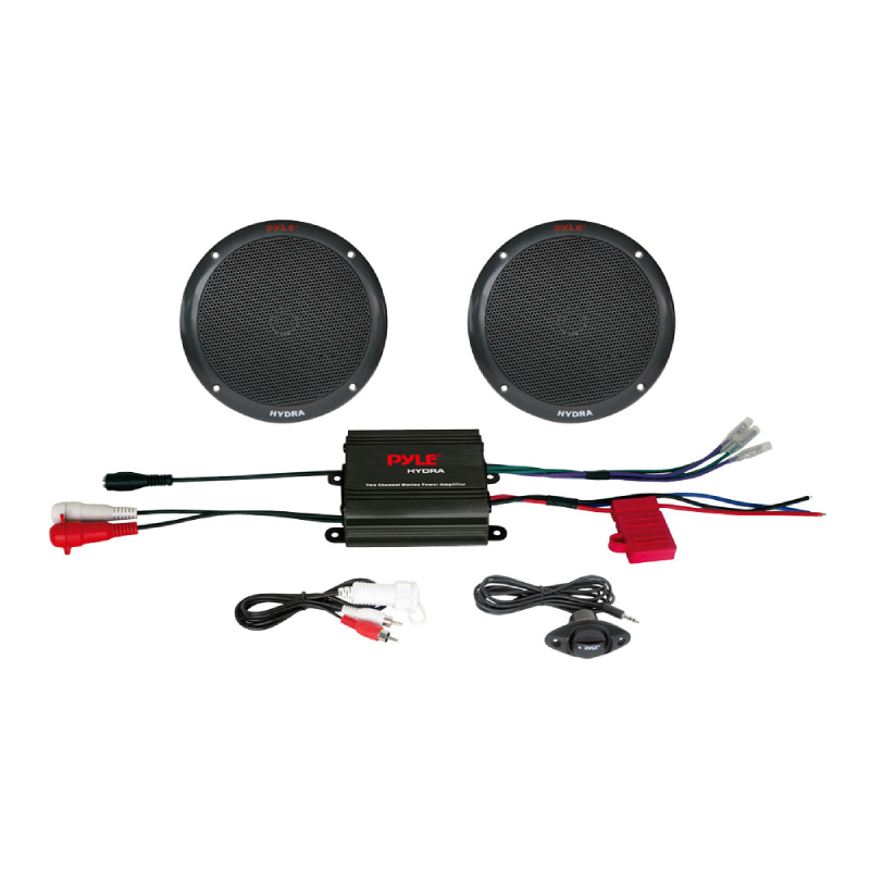 400W 2-Channel Waterproof Micro Marine Amplifier and 6-1/2" 2-Way 200W Speaker System