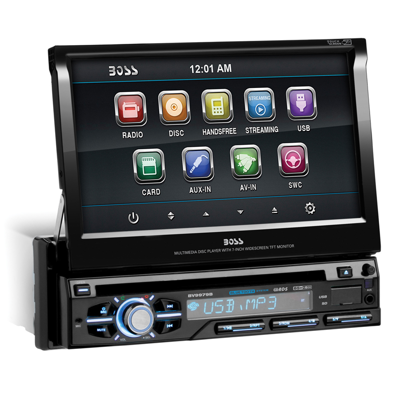 7" Single Din Motorized Touchscreen Monitor, Bluetooth®-Enabled/Audio Streaming, DVD/MP3/CD AM/FM Receiver