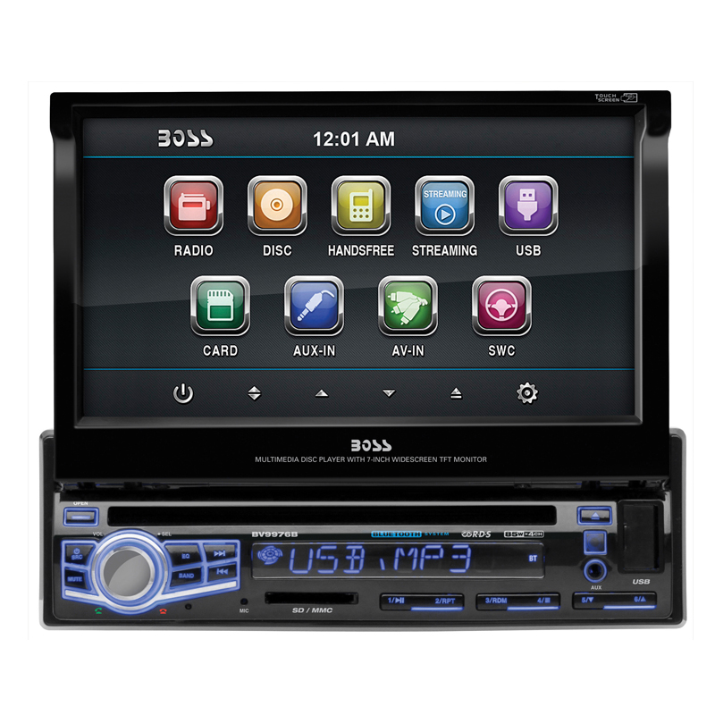 7" Single Din Motorized Touchscreen Monitor, Bluetooth®-Enabled/Audio Streaming, DVD/MP3/CD AM/FM Receiver