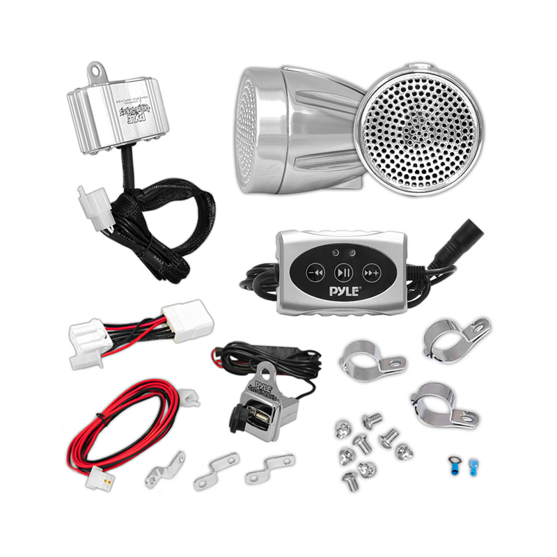 600 Watt Bluetooth Sound System for Motorcycle/ATV/Snowmobile with Weatherproof Speakers, Amplifier, 3.5mm Input for iPod/MP3 Players, iPhones, Smartphones, Dual Handle-Bar Mount and USB Charger