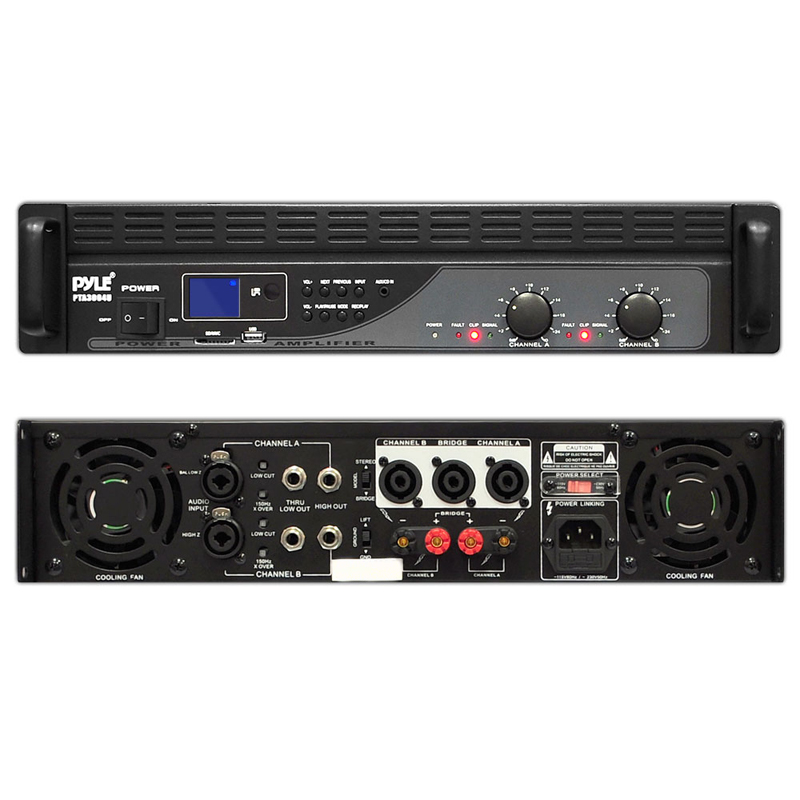 3000W Power Amplifier With USB/SD Readers, LCD Digital Display & Built-in Crossover