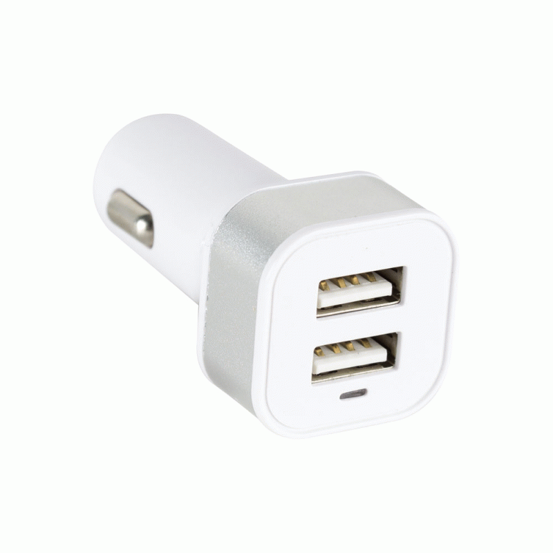 Dual USB Car Charger with 2 Charging Ports (Silver Accent Strip)