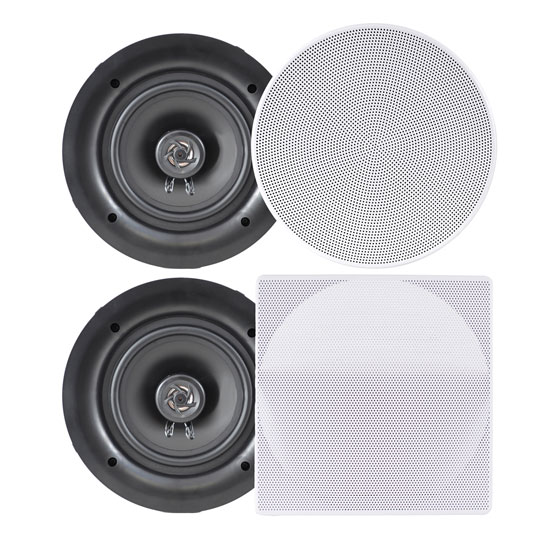 5.25" In-Wall / In-Ceiling Dual Stereo Speakers, 150 Watt, 2-Way, Flush Mount, White (Pair)