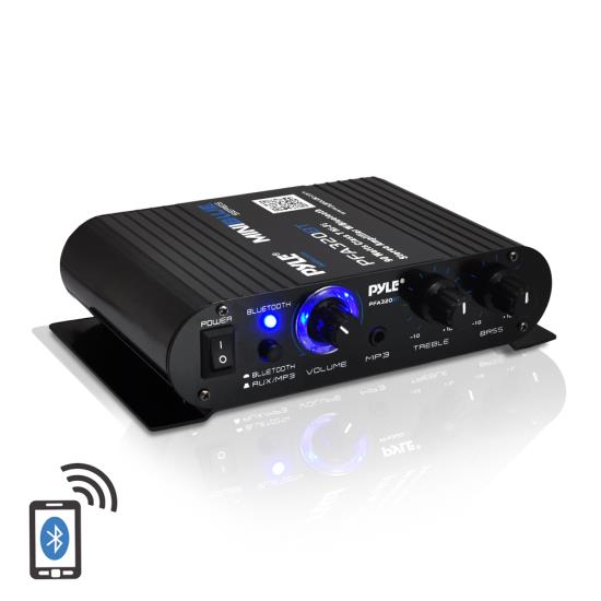 Bluetooth Mini Blue Series Compact Class-T Amplifier, 90 Watt Max Power, Aux (3.5mm) Input, Push-Type Speaker Terminals