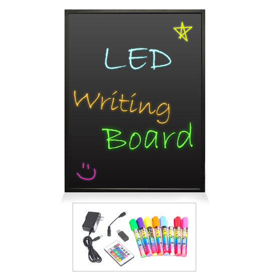 Erasable Illuminated LED Writing Board w/ Remote Control and 8 Fluorescent Markers, 16'' x 12''
