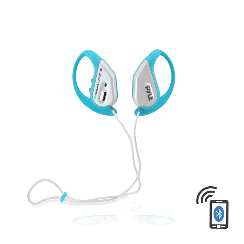 Bluetooth Water Resistant Headphones with Built-in Mic for Hands-Free Call Answering (Blue)