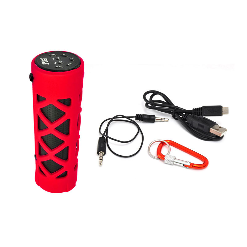 Bluetooth Water Resistant Flashlight Speaker with Call Answering Microphone, FM Radio, Micro SD Card Reader, AUX-Input (Red)