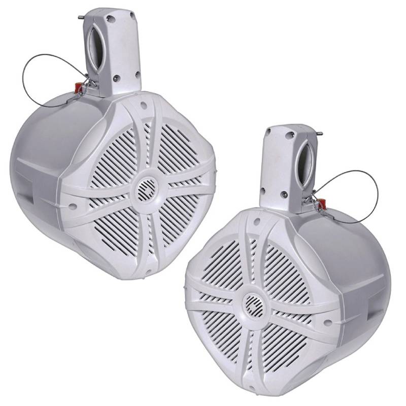 MWT Series 6.5" 500W Peak Power Handling 4 Ohm, 2-Way Coaxial Marine Wake Tower Speakers - White
