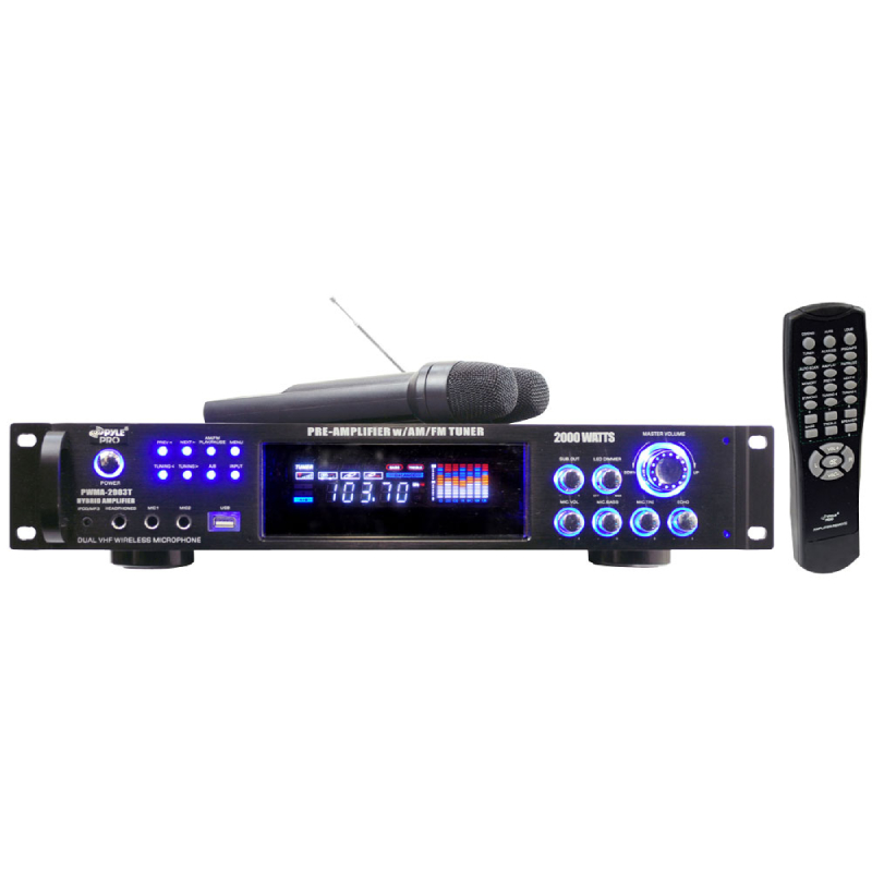 2000W Hybrid Stereo Receiver Amplifier with AM/FM Tuner/USB/Dual Wireless Microphones