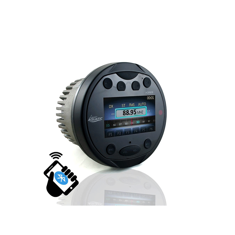 Waterproof Bluetooth Marine Digital Media Receiver Stereo Radio (USB/MP3, AUX, Video Inputs) AM/FM Radio, Round/Circle, Black