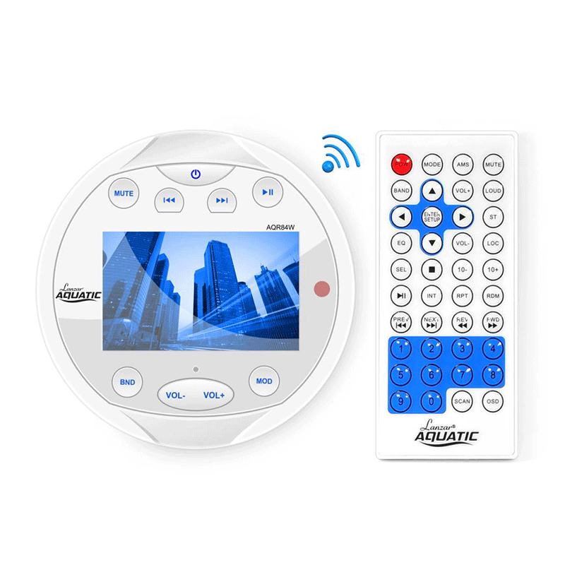 Waterproof Bluetooth Marine Digital Media Receiver Stereo Radio (USB/MP3, AUX, Video Inputs) AM/FM Radio, Round/Circle, White