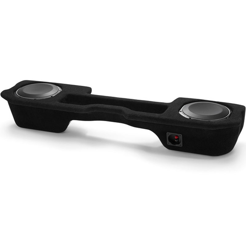Stealthbox® Two 10" 600W Peak Power Handling 4 Ohm, Shallow Mount Car Subwoofer in Sealed Enclosure for 2002-2018 Dodge Ram 1500 Quad Cab, 2003-Up 2500 & 3500 Quad Cab & 2009-2018 1500 Crew Cab & 2009-Up 2500 & 3500 Crew Cab