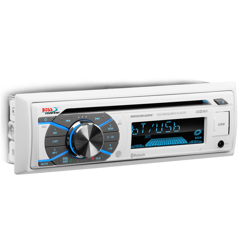 Single DIN Bluetooth In-Dash CD/AM/FM/Digital Media Marine Stereo Receiver (White)