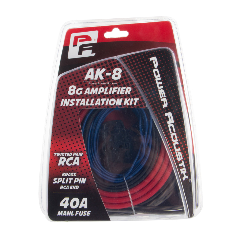 AK Series 8 Gauge Amplifier Installation Kit with 40A MANL Fuse Included