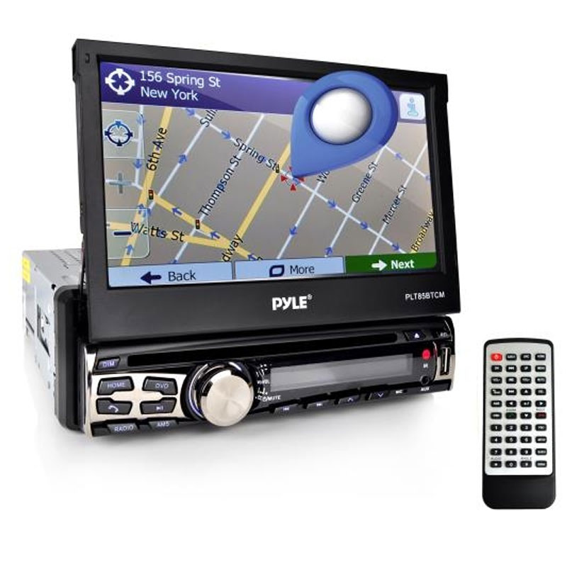 7-inch GPS Navigation and Bluetooth Headunit Receiver, Built-in Mic for Hands-Free Call Answering, Touch Screen, CD/Multimedia Disc Player, USB/Micro SD Card Readers, AM/FM Radio, AUX Input, Single DIN