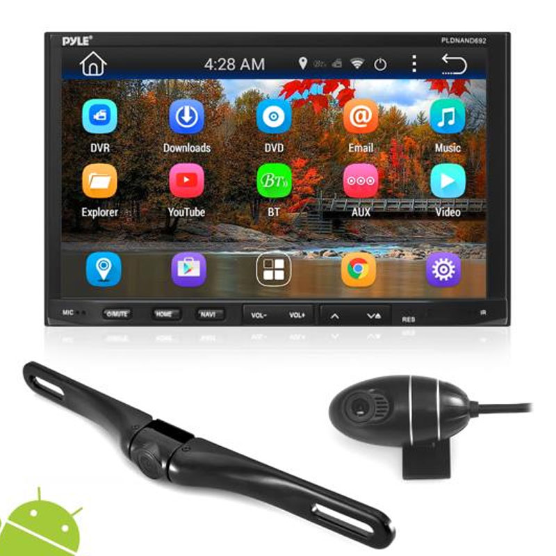 Android Stereo Receiver & Dual Camera System, HD DVR Dash Cam, Rearview Backup Camera, 7'' Touchscreen Tablet-Style Functionality Display