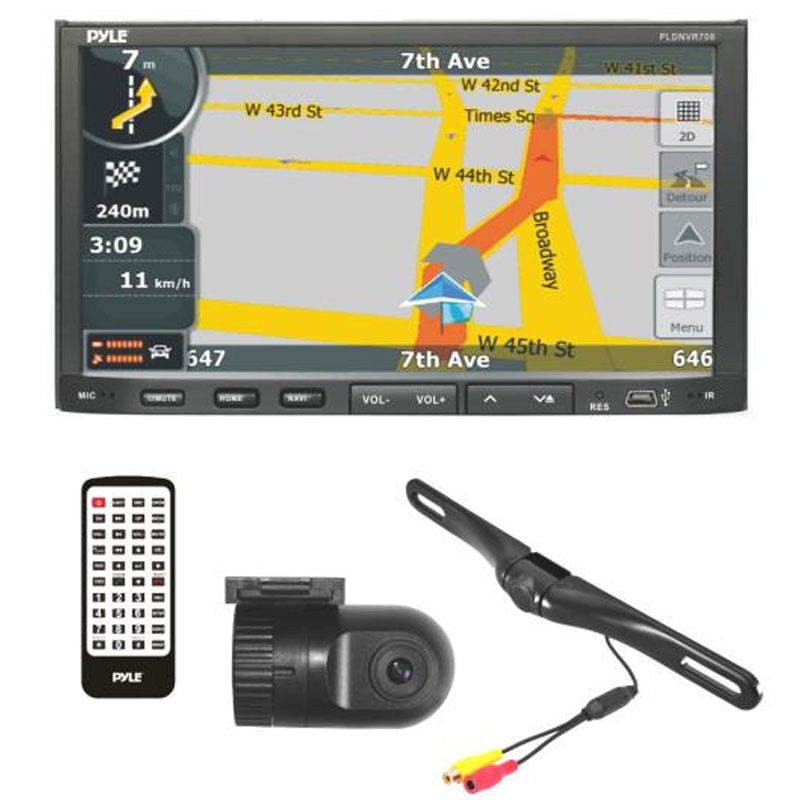 Stereo Receiver Headunit Radio, Rearview Backup Camera & Dash Cam Driving System Kit, GPS Navigation, Bluetooth Wireless Streaming, Hands-Free Calling, 7'' Touchscreen Display, Multimedia Disc Player, Double DIN