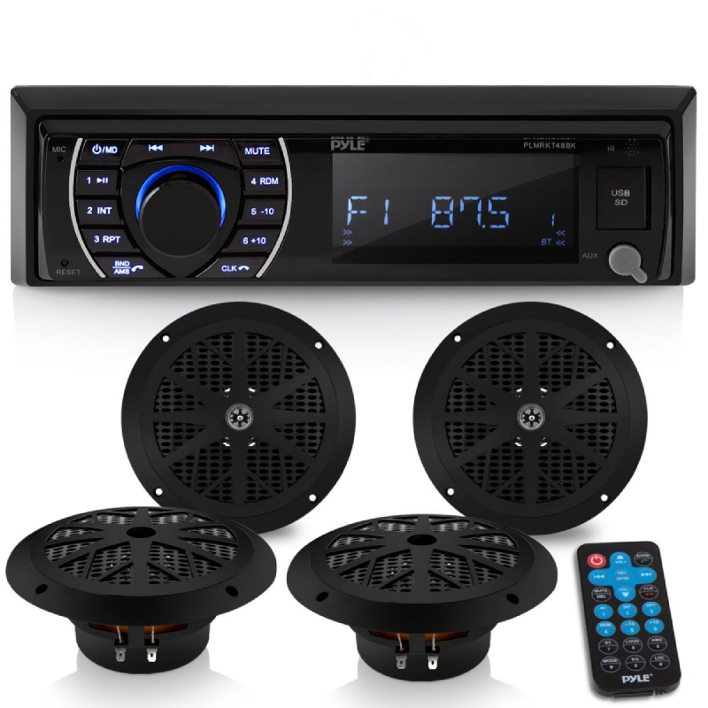 Bluetooth Marine Stereo & Speaker Kit (4) 6.5" Waterproof Speakers Hands-Free Calling Wireless Streaming MP3/USB/SD AM/FM Radio