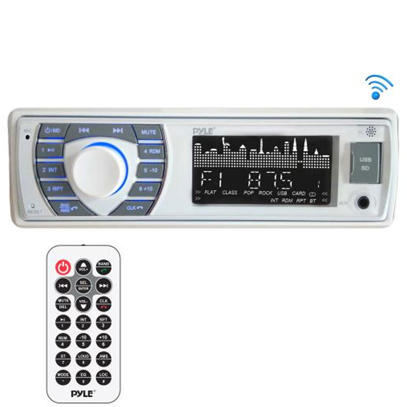Bluetooth Marine Receiver Stereo, Hands-Free Calling, Wireless Streaming, MP3/USB/SD Readers, AM/FM Radio (White)