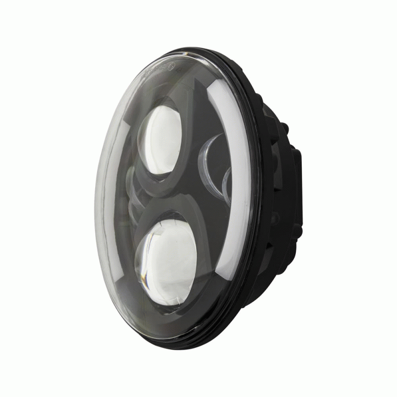 7 Inch Round With Partial Halo Black Front 6-LED Headlight