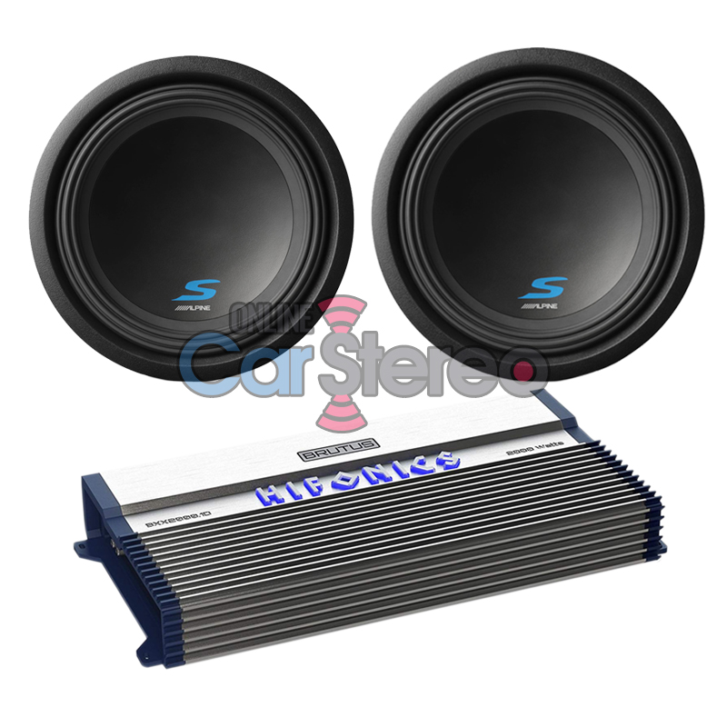 Hifonics BXX2000.1D 2000 Watt 1-Ohm Mono Car Audio Amplifier + Two Alpine S-W12D2 12" 1800 Watts Peak Power Dual 2-Ohm Car Subwoofer