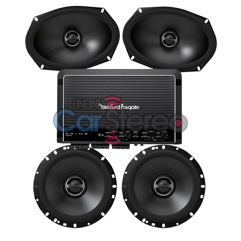 Alpine S-S69 6"x9" 260W Peak 2-Way Coaxial Speakers + Alpine S-S65 6.5" 240 Watts Peak Power, 2 Way Coaxial Car Speaker + Rockford Fosgate R250X4 250W 4-Channel Class A/B Car Amplifier
