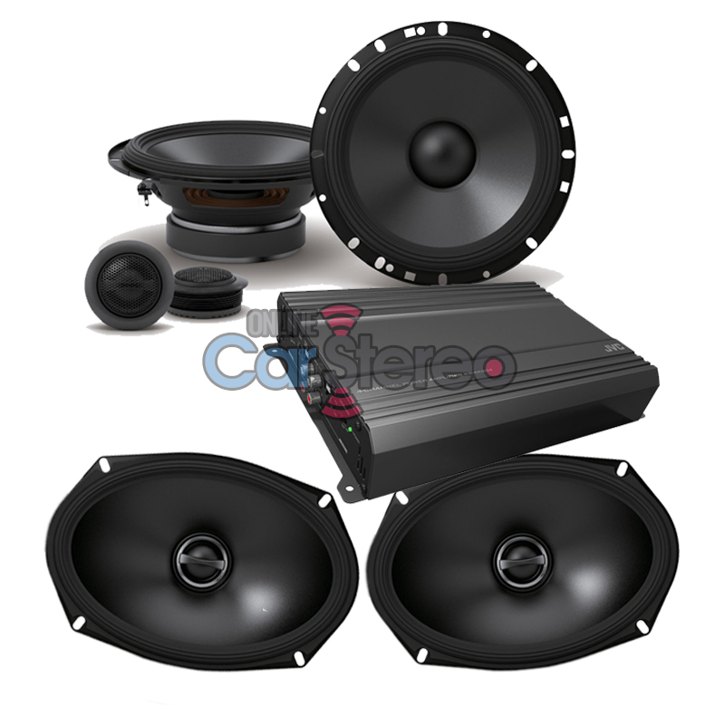 JVC KS-AX204 600W Max 4-CH Class A/B Amplifier + Alpine S-S65C 6.5" 240W Peak Component 2-Way Car Speaker Set + Alpine S-S69 6"x9" 260W Peak 2-Way Coaxial Speakers