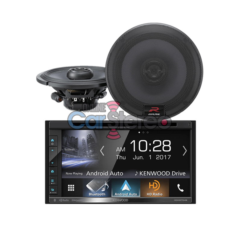 Kenwood DDX6704S 2-DIN DVD/CD Bluetooth Car Stereo Receiver + Alpine R-S65 6.5" 600W Max 2-Way Coaxial Speakers