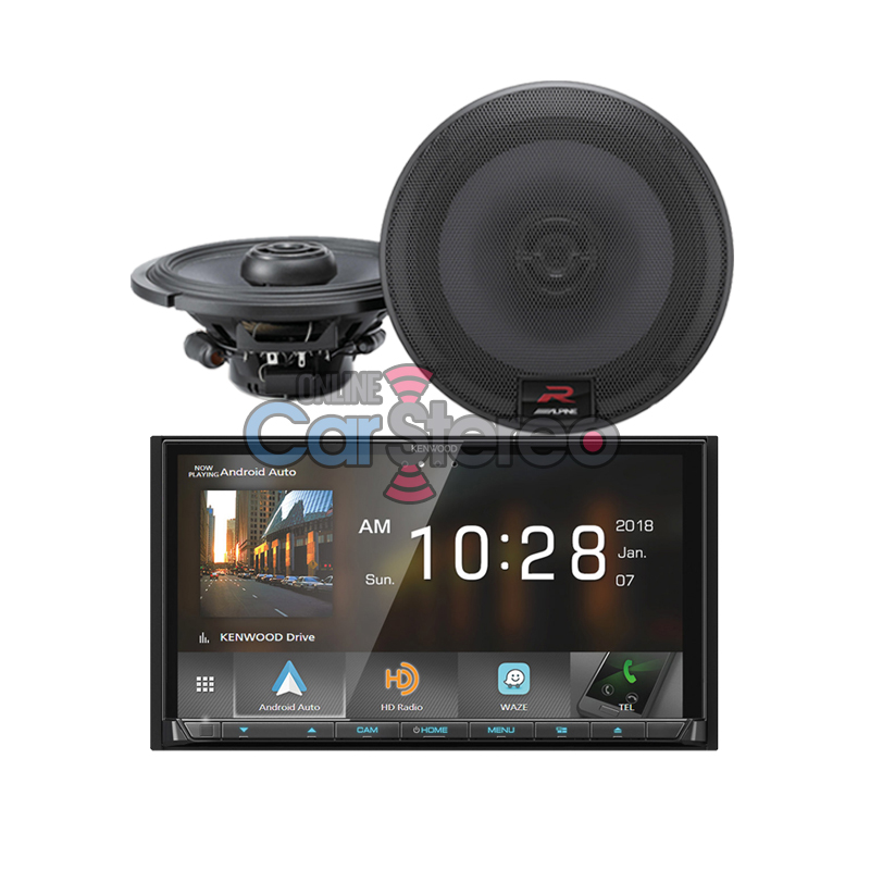 Kenwood DDX9705S 2-Din 6.95" Capacitive Touchscreen In-Dash DVD/CD/AM/FM Bluetooth Car Stereo Receiver + Alpine R-S65 6.5" 600W Max 2-Way Coaxial Speakers