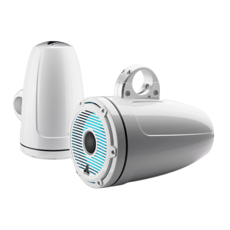 M6 Series 8.8" 300W Peak Power Handling 4 Ohms, 2-Way Marine Wakeboard Tower Speakers, Gloss White w/ Gloss White Classic Grille (Pair)
