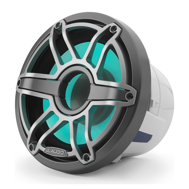 • Hooked it up to a multi-channel amp on my boat, and it pounds beautifully. The RGB lighting is a nice feature from JL Audio.