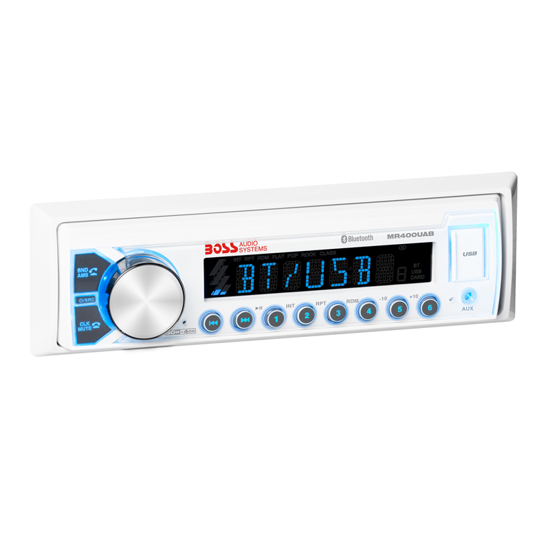 Single-DIN In-Dash Mech-less Marine Multimedia Receiver with Built-in Bluetooth, Spotify, Pandora, Switchable Tuner