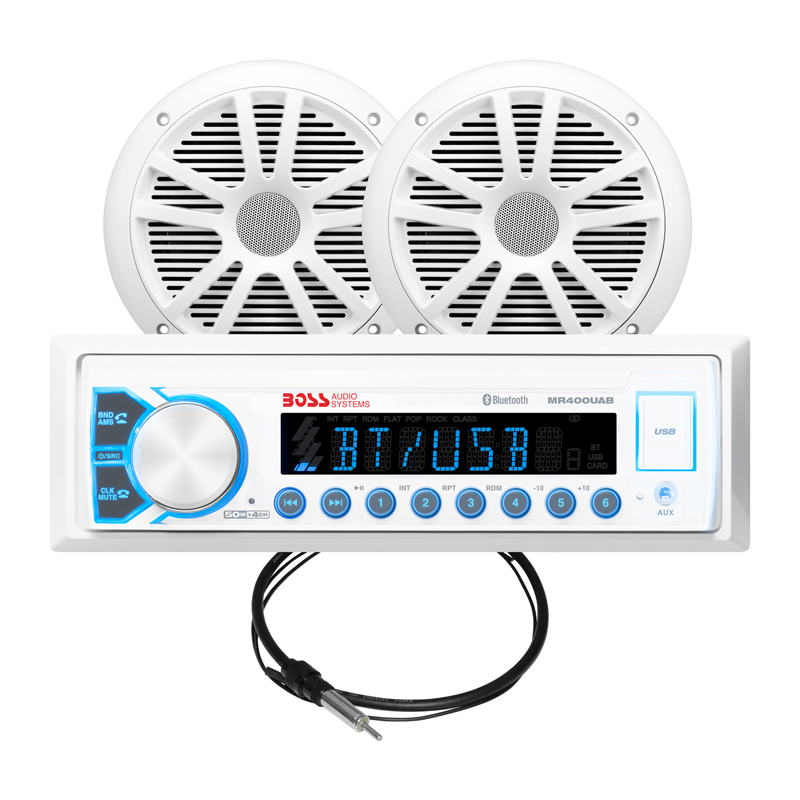 MR508UABW Single-DIN Marine AM/FM CD Receiver + One Pair of 6.5 inch Marine MR6W Speakers + MRANT10 Marine Antenna - Boss Audio Marine Package