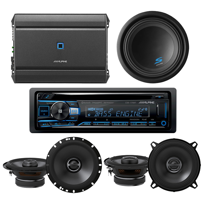 Alpine S-A55V + Alpine CDE-175BT + Alpine S-S65 + Alpine S-S50 + Alpine S-W10D2 Exclusive Bundle